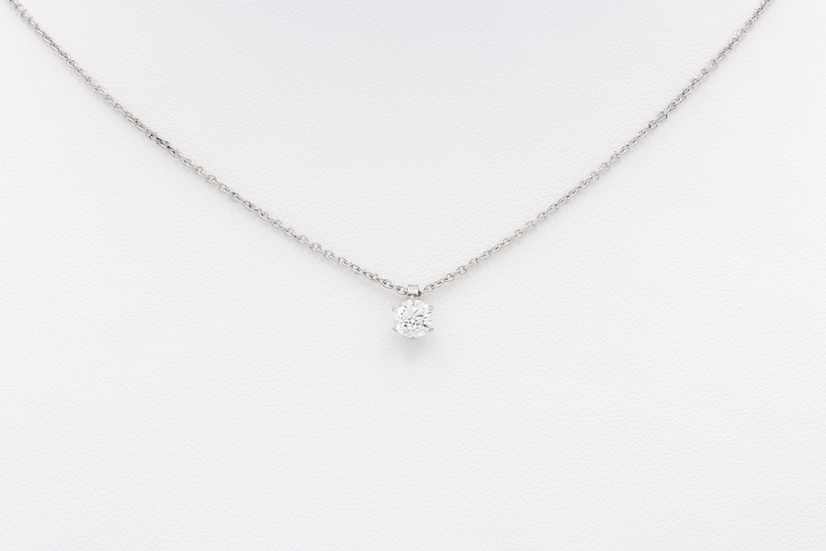 Solitaire necklace in 18K white gold with a gold weight of 2.60 grams. The necklace is set with 1 brilliant cut diamond in the quality G-si with a total of 0.40 carats.