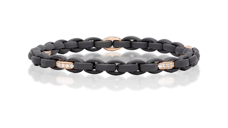 This men’s bracelet in black titanium and 18K rose gold, measures 6.0 cm in diameter with a gold weight of 1.90 grams. It is set with 50 brilliant-cut diamonds in G-si quality, totalling 0.60 carats.
