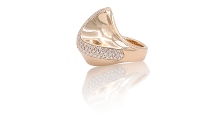 The stunning 18K rose gold ring in size 54 weighs 18.80 grams and is elegantly set with 76 brilliant-cut diamonds in F-vs quality, totalling 1.00 carat.
